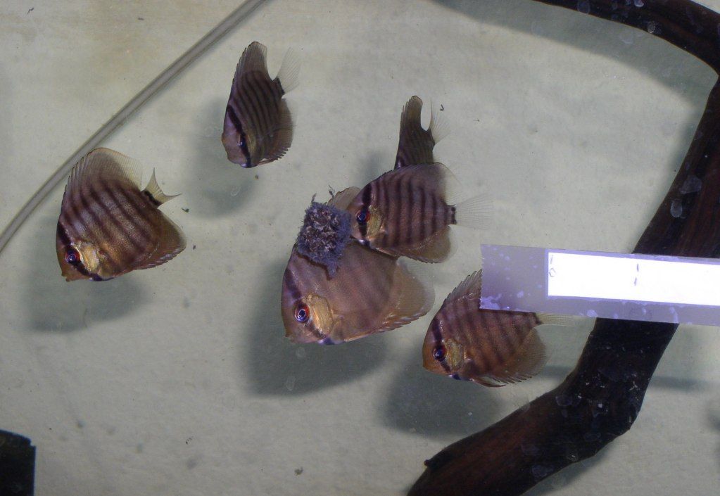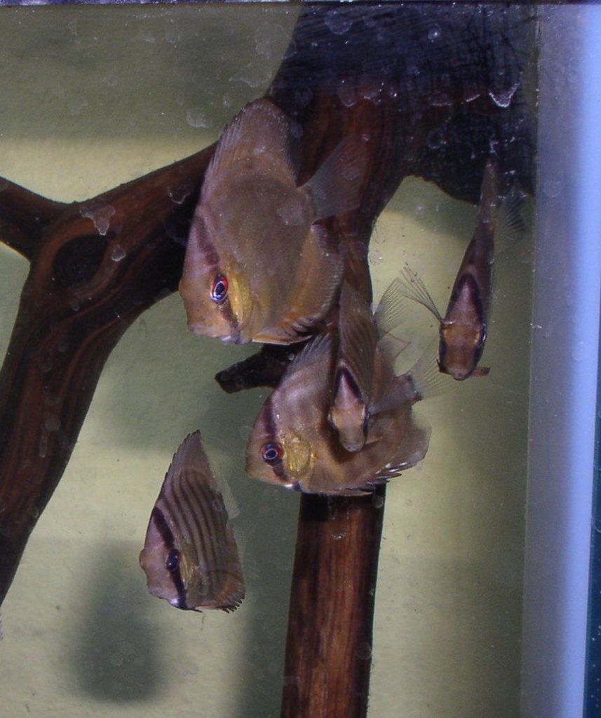 Full tank shot. 40 breeder with wood on one end to anchor the group to one end of the tank. Does it work, well it did with Batch A but with this small group not so much. They are still under going the metro treatment and the feeding vigor better but not great.
