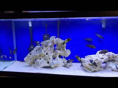 This his the talk tjat will eventually house my return to discus group. For now I am growing out a mixed group of lake tanganyika tropheus species. Very social, highly active species of fishes. I will be adding 1 more variant in the next few months, a line bred variant called red bishops, which are a natural mutation of the species black “caramba”. A splash of lighter red to round it out. Once these guys are all 3-5” I will sell off my Malawis from the 500gal, moves these, and get some discus this tank.